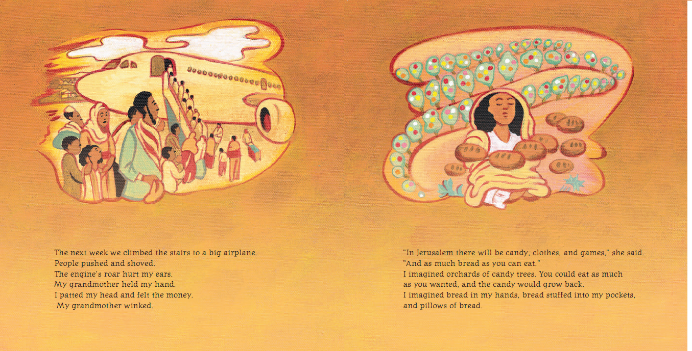 Yuvi’s Candy Tree is a fictional story based on the true story of Yuvi Tashome. Yuvi, a little Ethiopian Jewish girl, escapes the poverty and terror of Ethiopia in the early 1980s with her grandmother, arriving in Israel where the orange trees with their sweet fruit fulfill her dream to live in a place where "candy trees" grow. Yuvi Tashome escaped from Ethiopia to a Sudanese refugee camp when she was a little girl. She was later airlifted to Israel as part of Operation Moses, one of several Israeli rescue operations of Ethiopian Jews in the 1980s and 1990s. Israel’s Law of Return gives Jews of all countries the right to return to Israel. The Ethiopian Jews viewed Israel as their home, and they risked their lives to return.